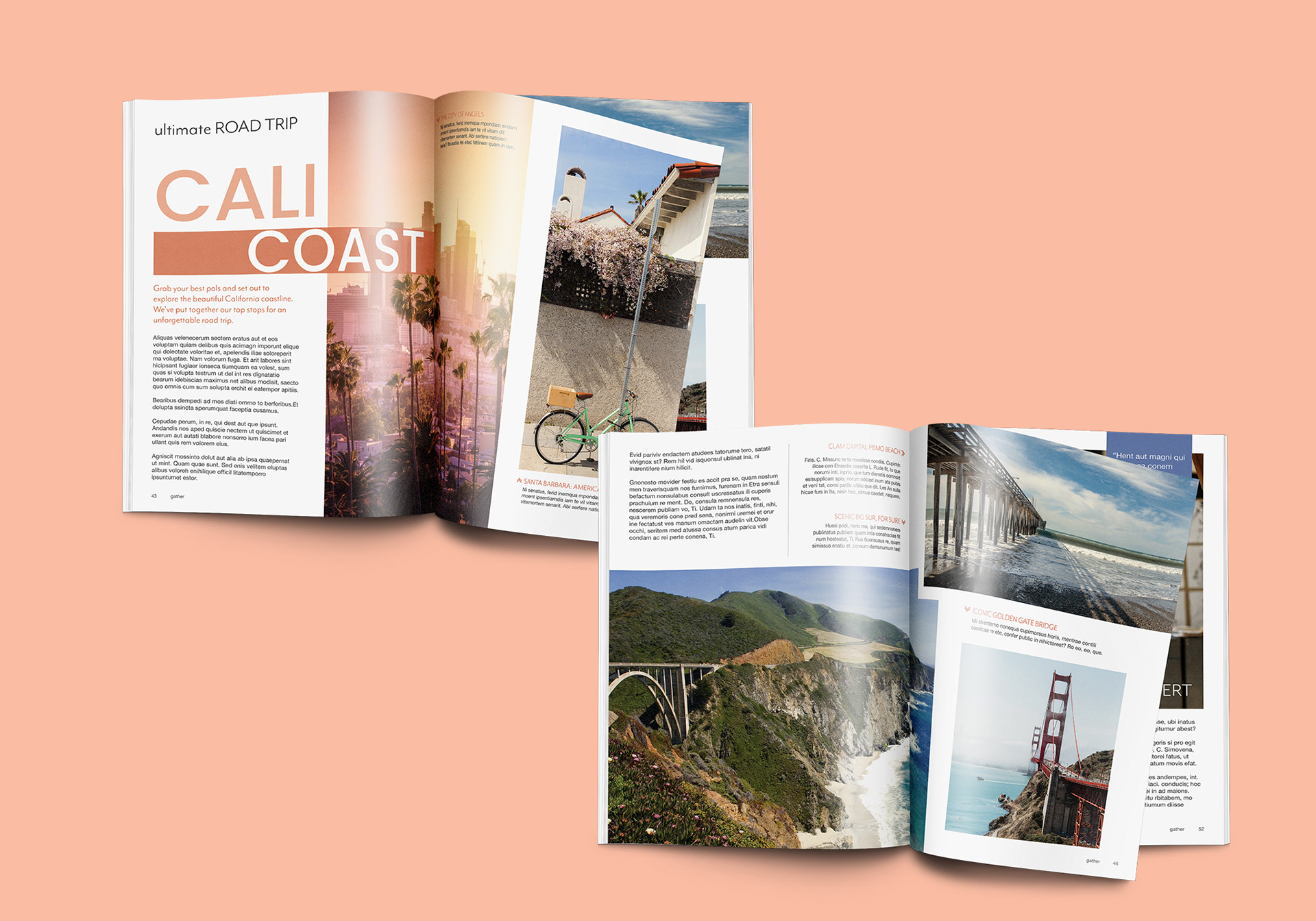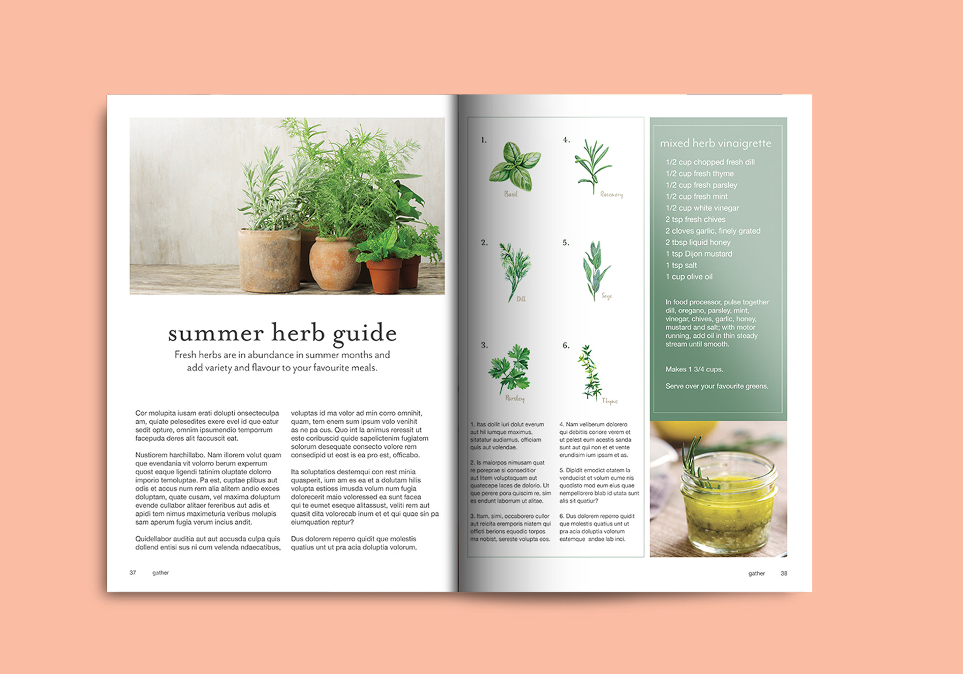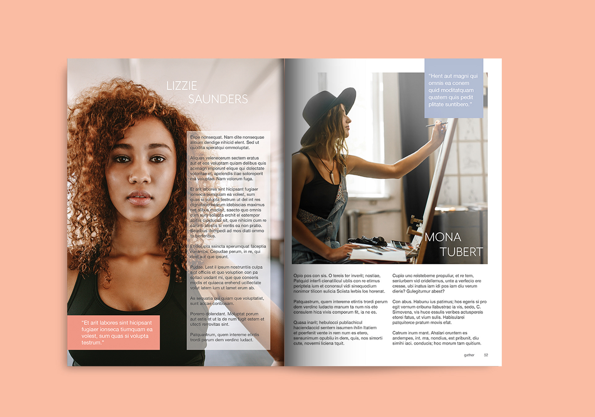 Gather is a modern, quarterly lifestyle magazine for young, urban women offering fresh, fun and inspiring content including women's fashion, health, travel tips, home and lifestyle advice, and inspirational stories featuring women in business and creative fields.