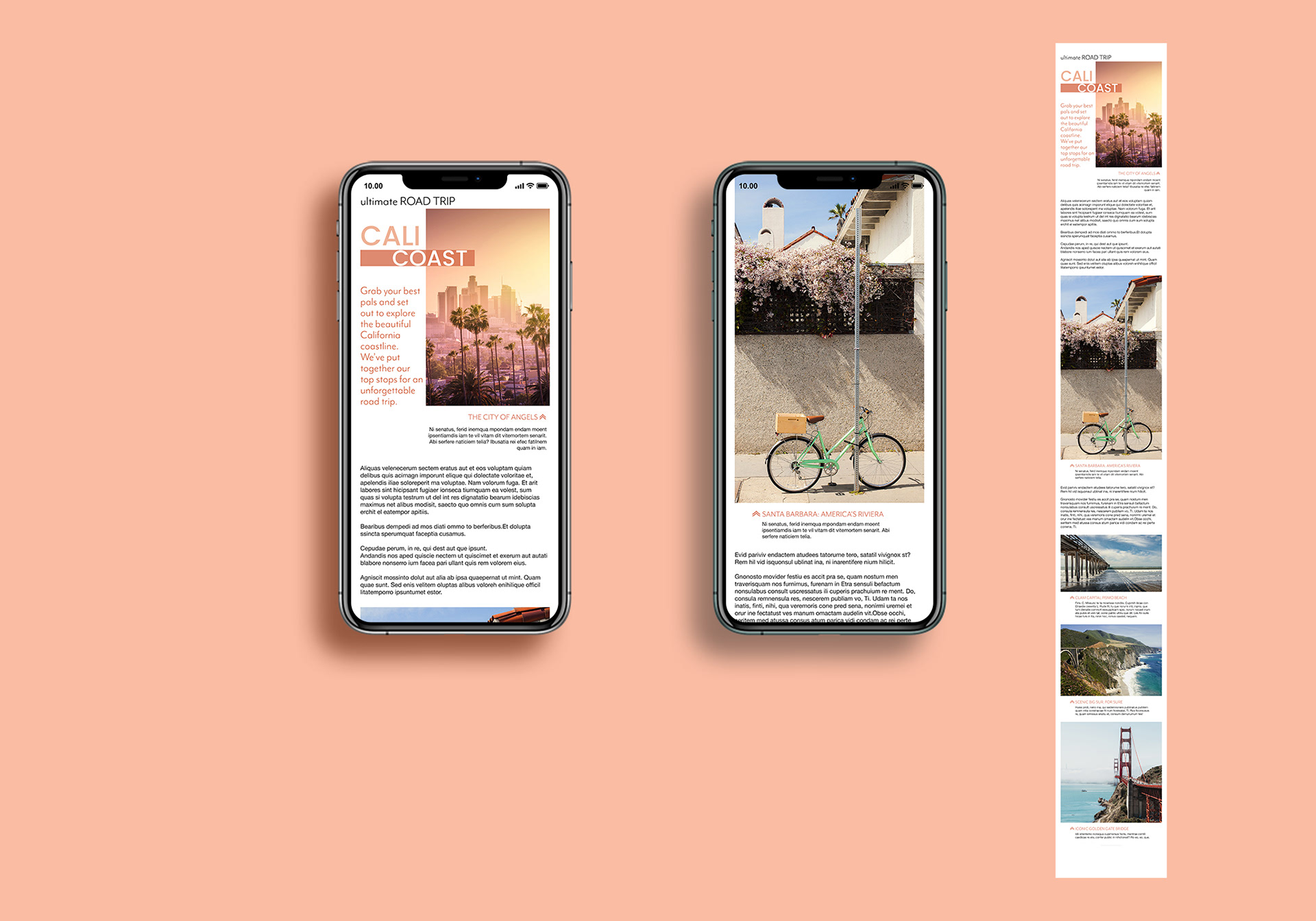 For the mobile version, the headings and images were adapted to be appropriate for the narrower landscape of the device while maintaining the essence and style of the print version, creating a consistent, cross-platform experience for the reader.