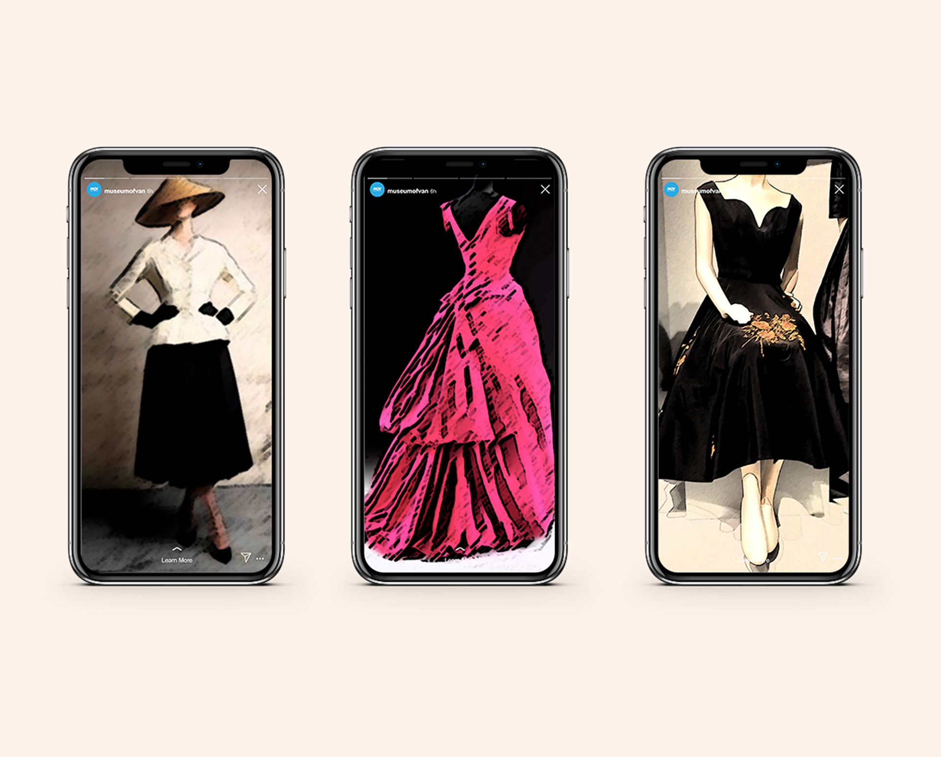 The concept behind the project was to highlight the beauty and artistry of the clothing designs while creating an effective marketing piece that would get noticed by the audience – reimagining each piece of clothing as a fashion illustration – as they would have started out as before becoming the classic garments and silhouettes of their time.
